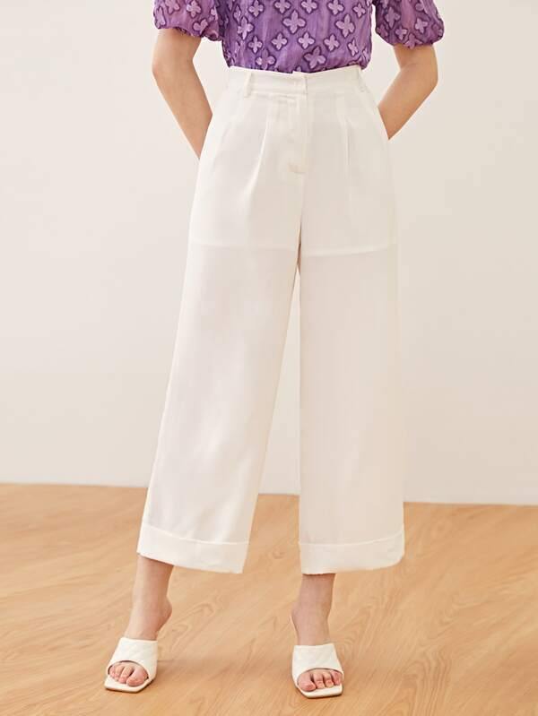 Cuffed Hem Wide Leg Pants - $20.00 SGD