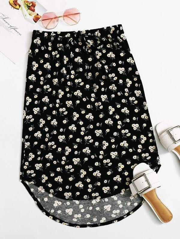 Ditsy Floral Print Dip Hem Skirt - $19.00 SGD