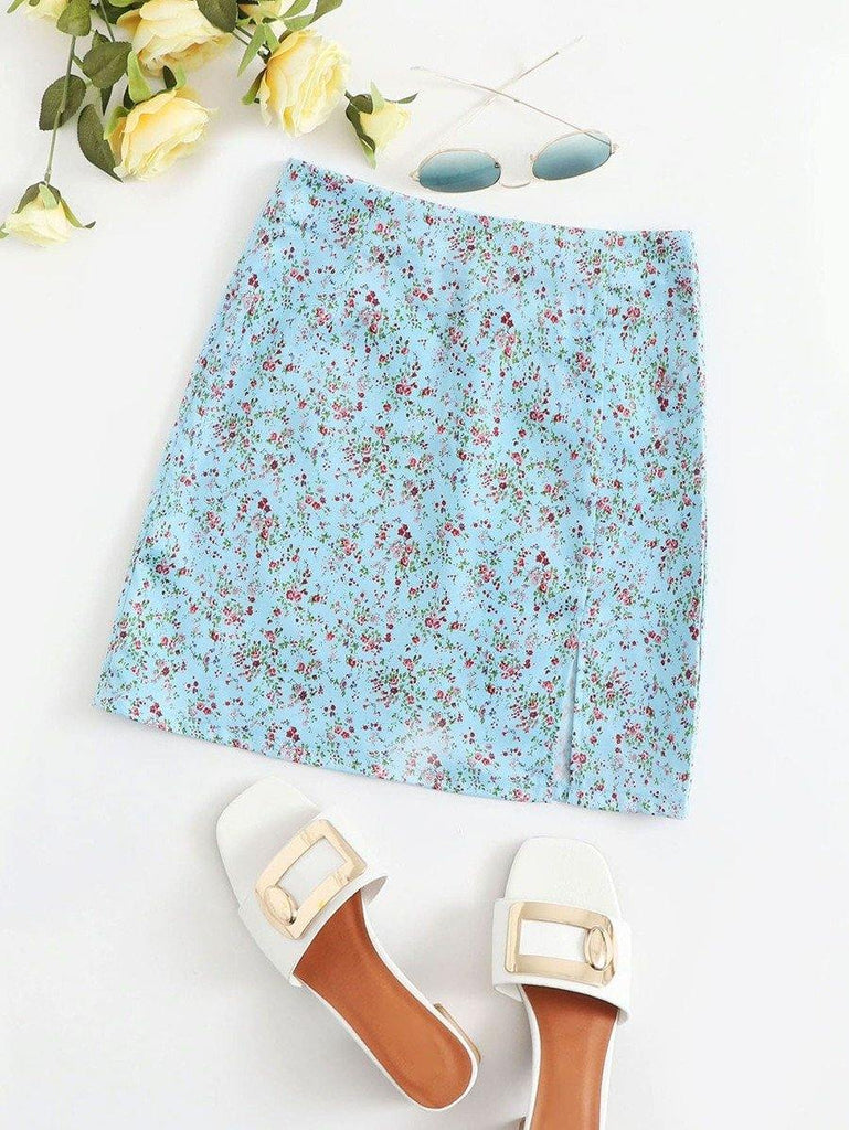 Ditsy Floral Print Split Hem Mini Skirt