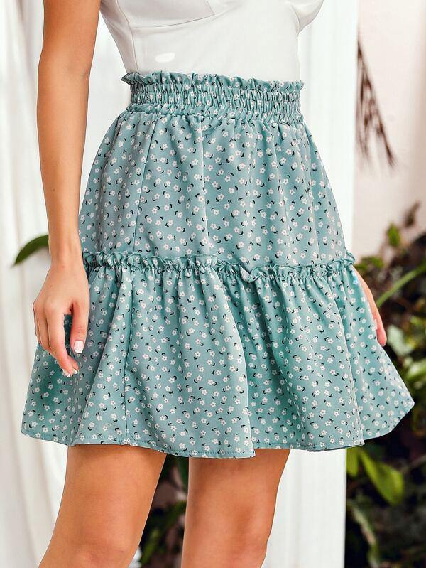 Ditsy Floral Ruffle Hem Skirt - $34.00 SGD