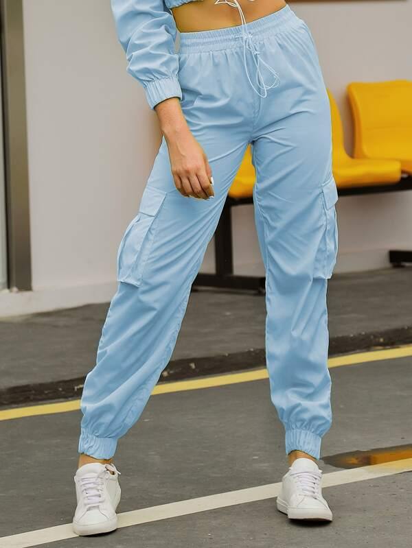 Double Crazy Drawstring Waist Flap Pocket Side Cargo Pants