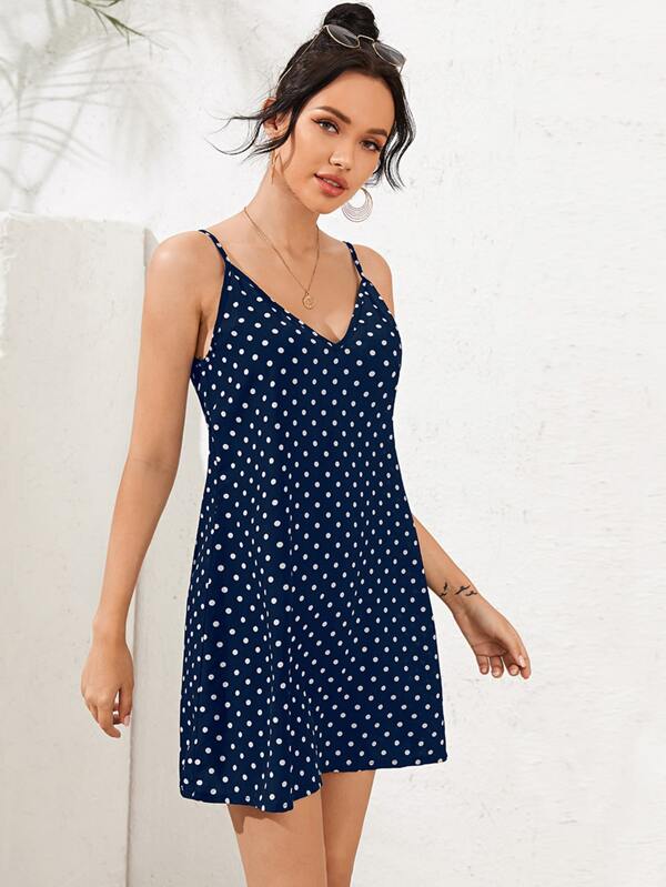 Double V-Neck Polka Dot Slip Dress - $16.00 SGD