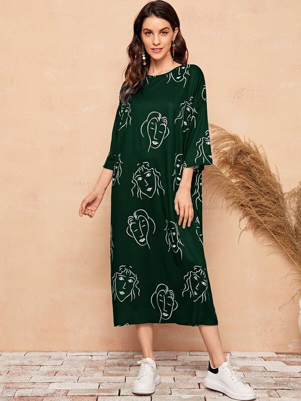Drop Shoulder Figure Graphic Dress - $25.00 SGD