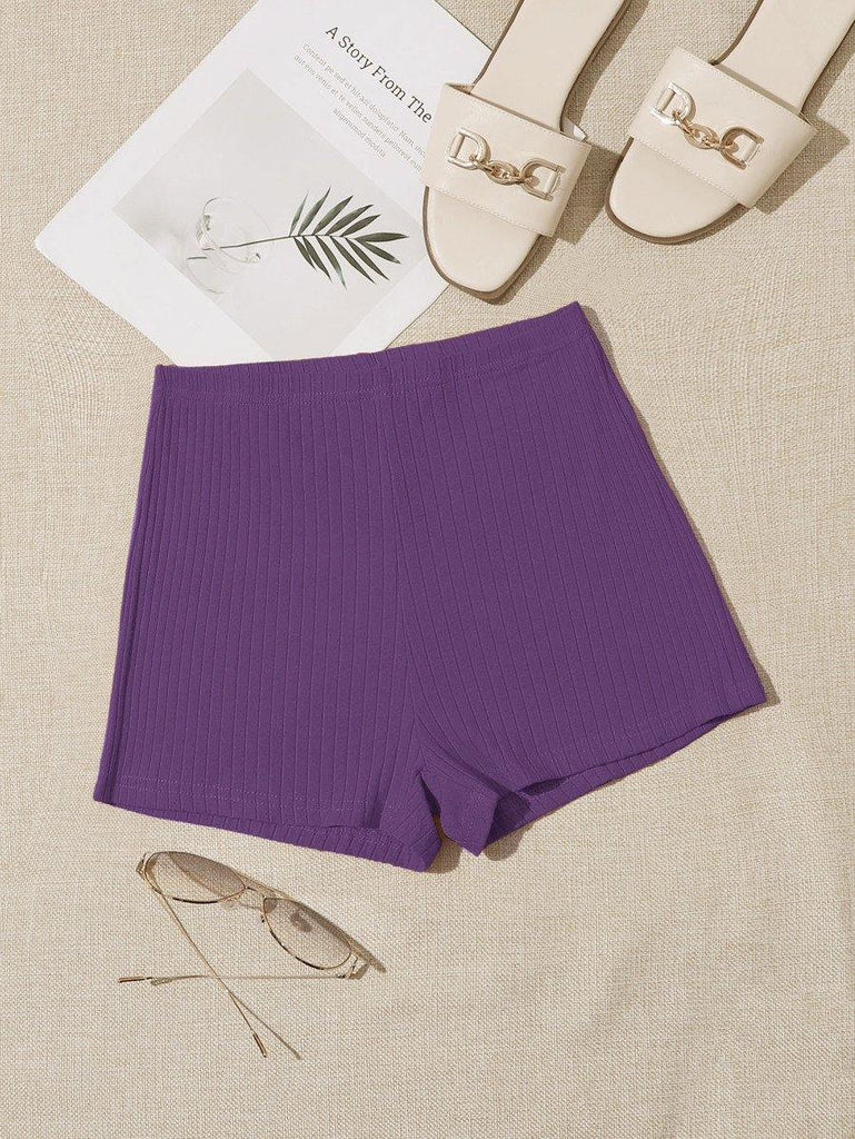 Elastic Waist Solid Rib-knit Shorts