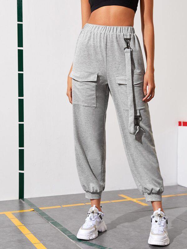 Flap Pocket Front Strap Detail Sweatpants