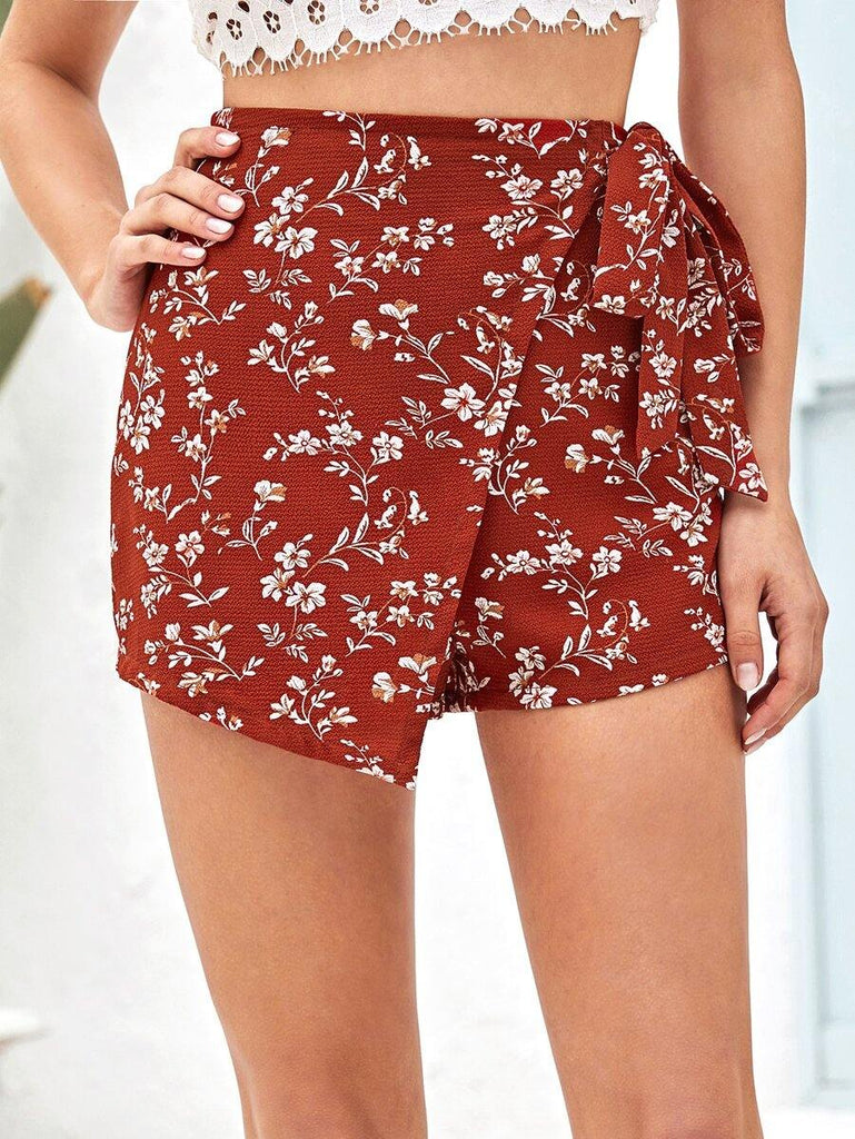 Floral Print Wrap Knot Skort - $27.00 SGD