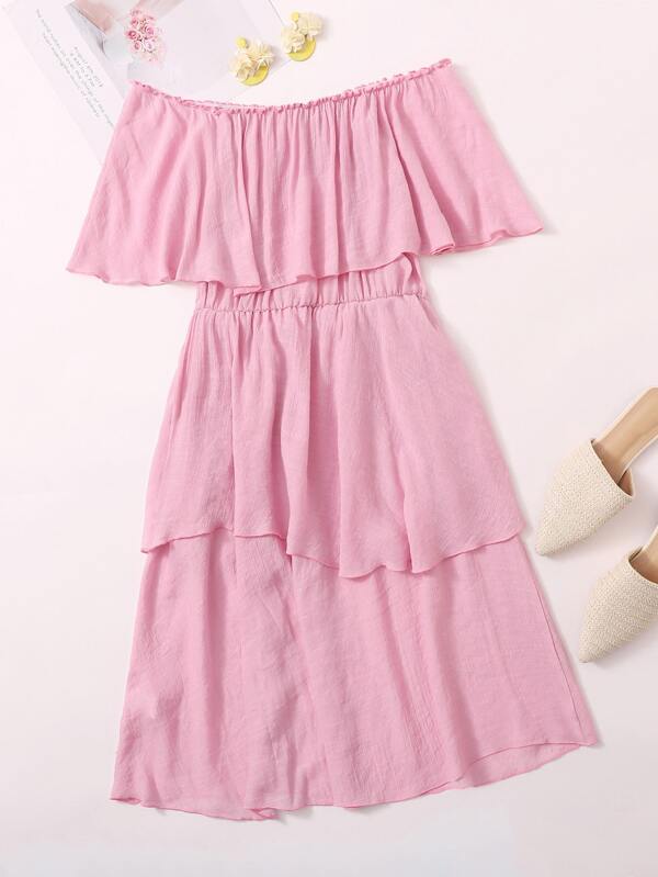 Flounce Off Shoulder Double Layer Dress - $30.00 SGD