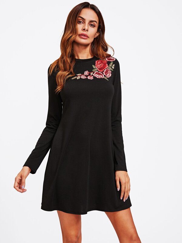 Flower Embroidery Applique Swing Tee Dress