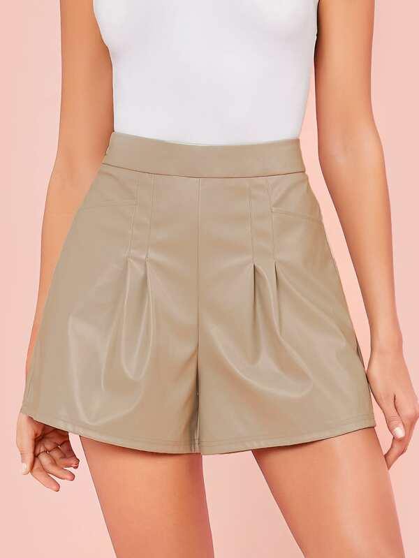 Fold Pleat Detail PU Leather Shorts - $35.00 SGD