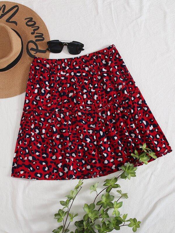 Frill Trim Leopard Print Skirt - $27.00 SGD
