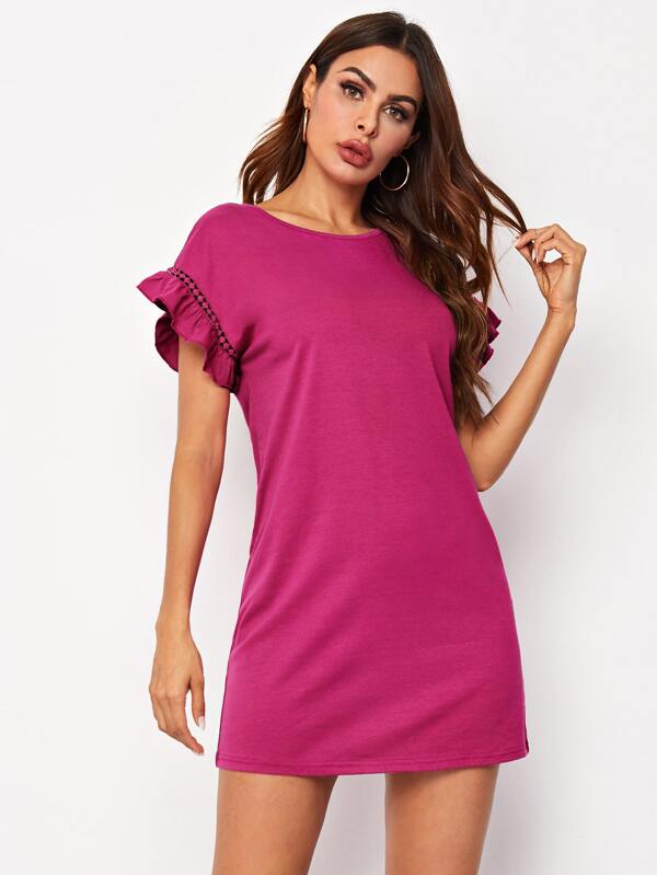 Guipure Lace Insert Ruffle Cuff Dress - $32.00 SGD