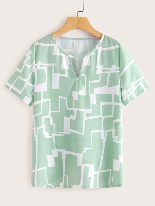 Keyhole Neck Geo Print Blouse