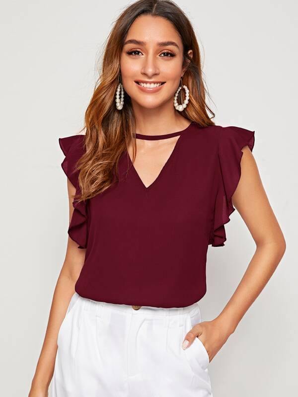 Keyhole Neckline Butterfly Sleeve Top - $32.00 SGD