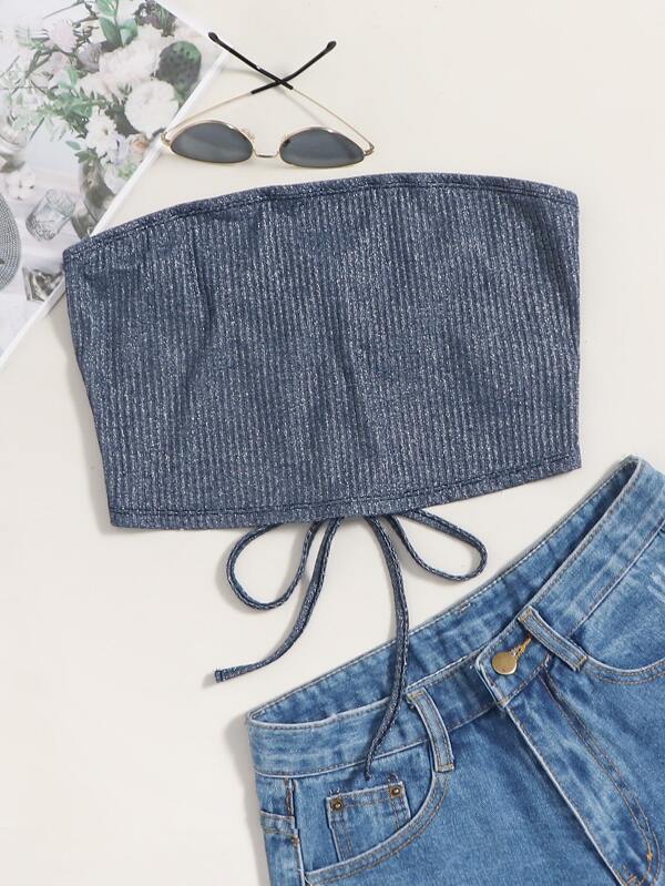 Lace-up Back Glitter Bandeau Top - $20.00 SGD
