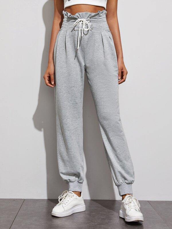 Lace Up Front Paperbag Waist Sweatpants - $31.00 SGD