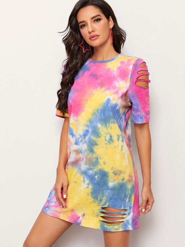 Laddering Cutout Detail Tie Dye Dress Without Bag