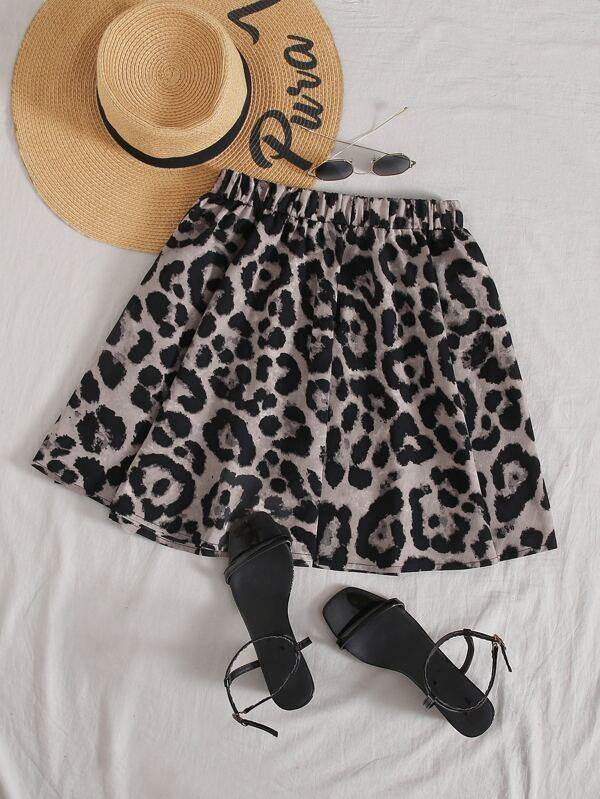 Leopard Print Flared Short Skirt