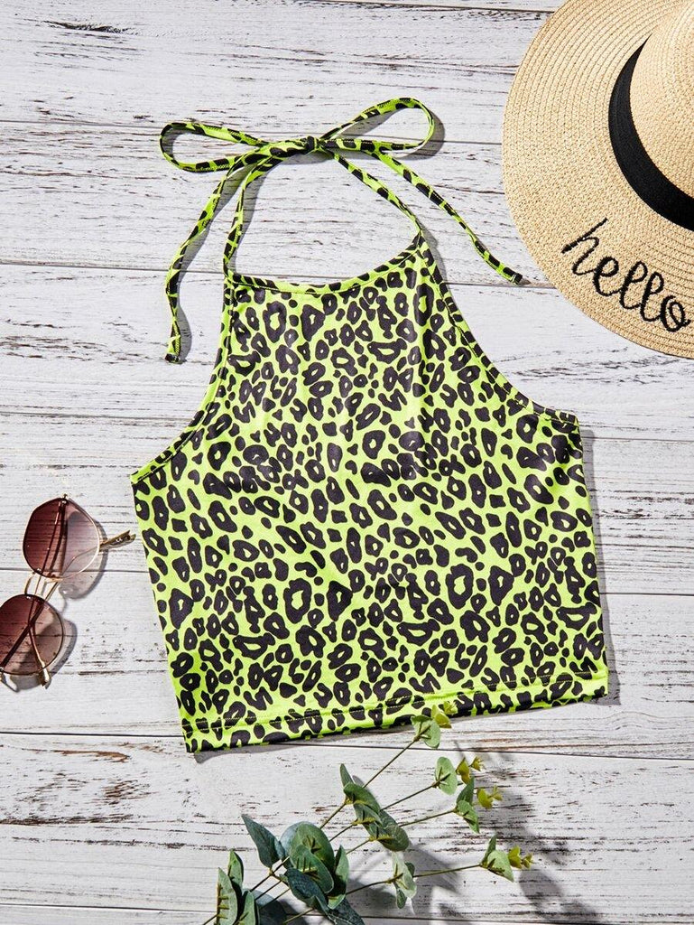 Leopard Print Tie Back Halter Top - $17.00 SGD