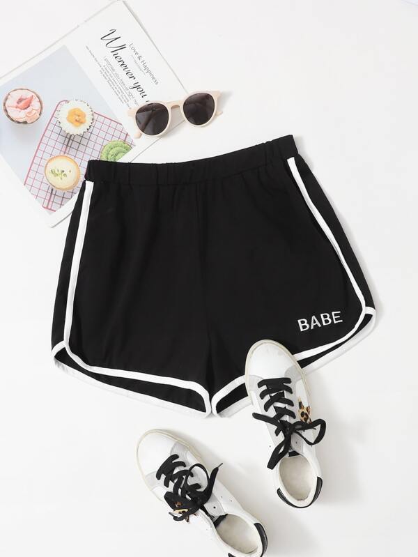 Letter Embroidered Contrast Binding Dolphin Shorts