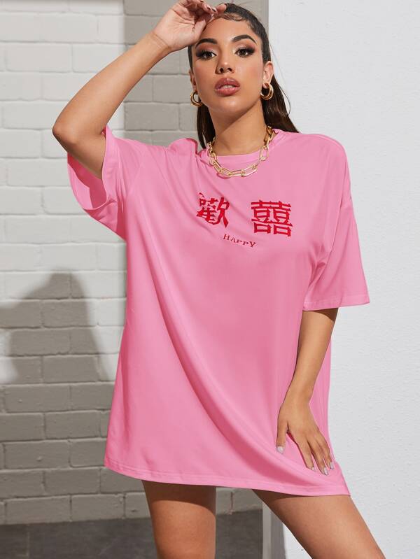 Letter Graphic Drop Shoulder Tee Dress - $31.00 SGD