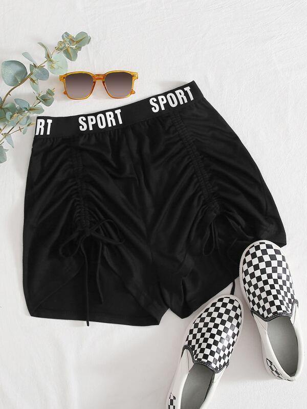 Letter Tape Drawstring Ruched Track Shorts - $26.00 SGD