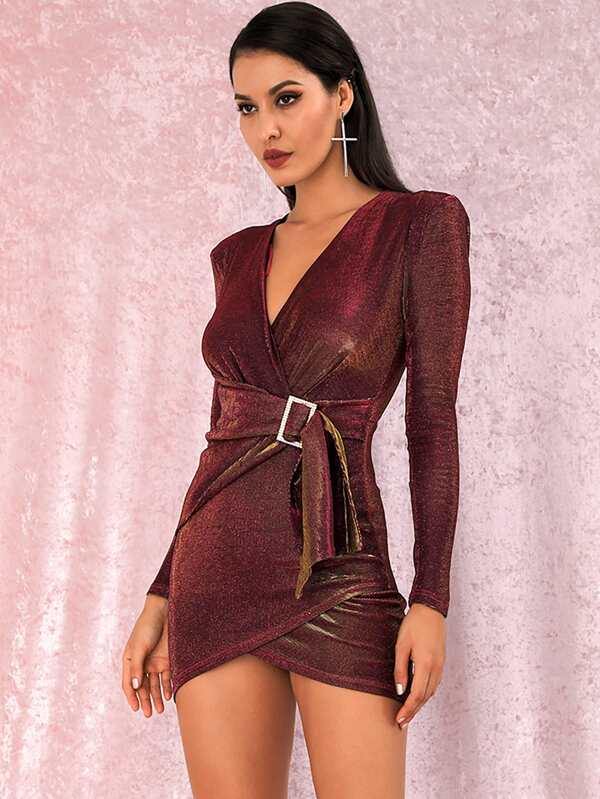 LOVE&LEMONADE Surplice Wrap Belted Glitter Dress