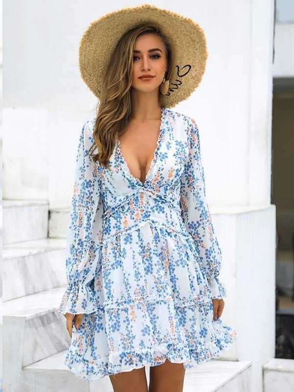 Missord Cut Out Back Layered Ditsy Floral Dress