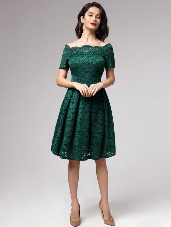 Miusol Off Shoulder Floral Lace Overlay Dress - $23.00 SGD