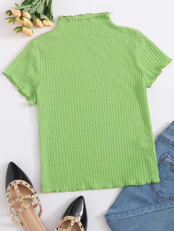 Mock-Neck Lettuce Trim Textured Knit Top - $26.00 SGD
