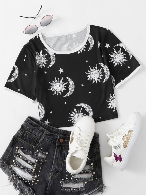 Moon And Sun Graphic Crop Tee