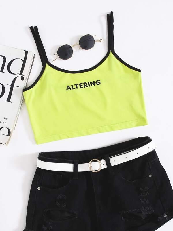 Neon Green Letter Graphic Double Strappy Crop Top