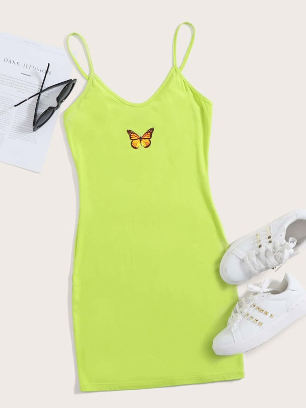 Neon Lime Butterfly Print Cami Dress