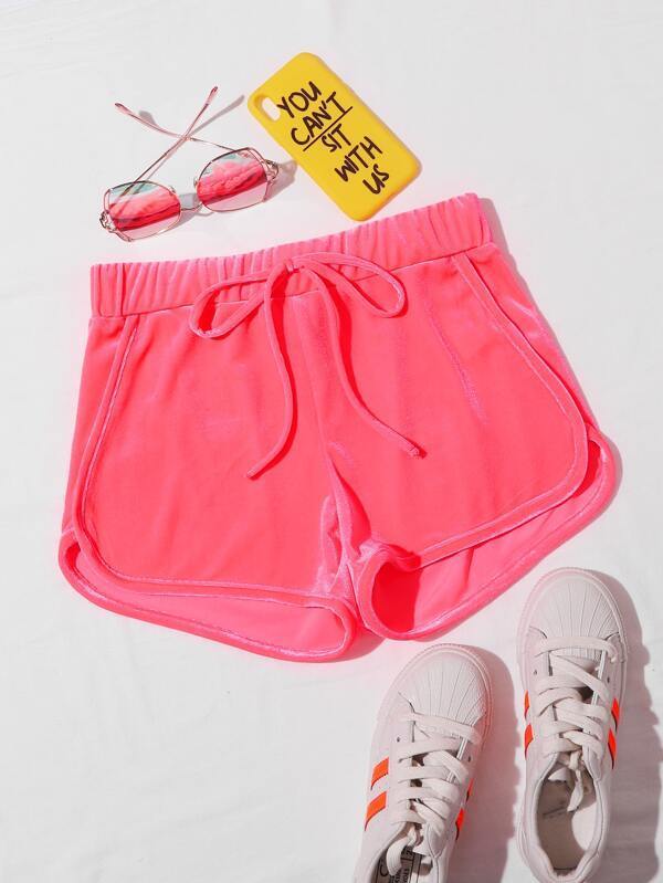 Neon Pink Knot Waist Velvet Dolphin Shorts