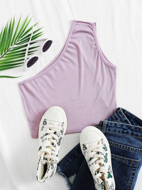 One Shoulder Ribbed Crop Top - $19.00 SGD