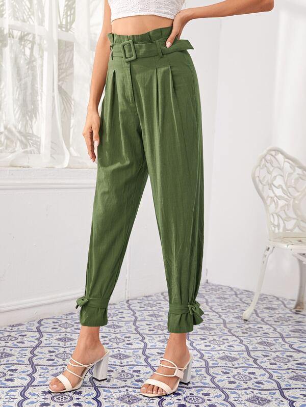 Paperbag Waist Belted Solid Pants - $15.00 SGD