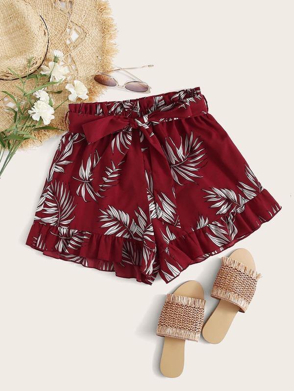 Paperbag Waist Ruffle Hem Self Belted Shorts