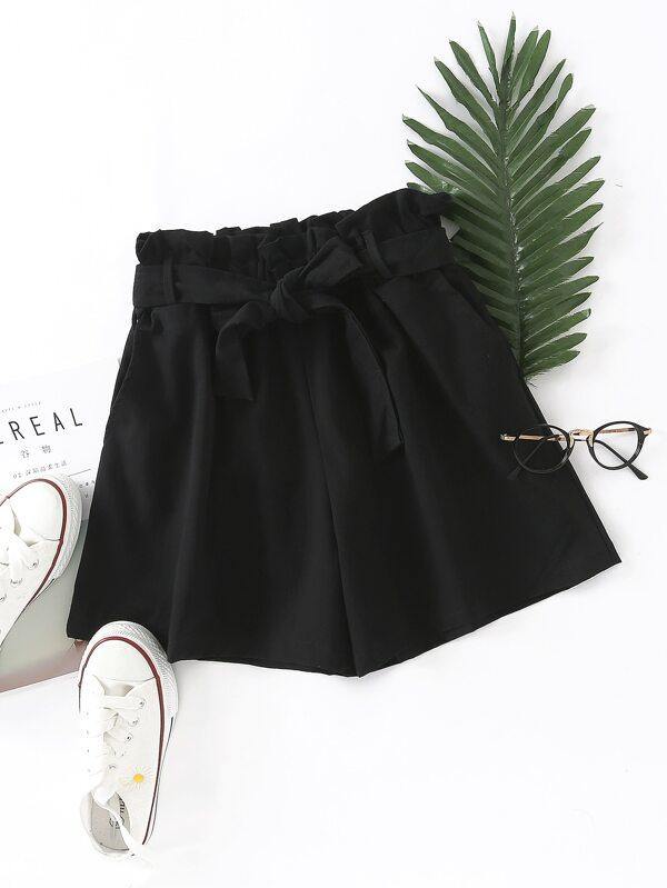 Paperbag Waist Self Tie Shorts - $24.00 SGD