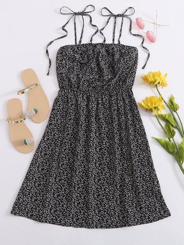 Plant Print Tie Shoulder Cami Dress - $24.00 SGD