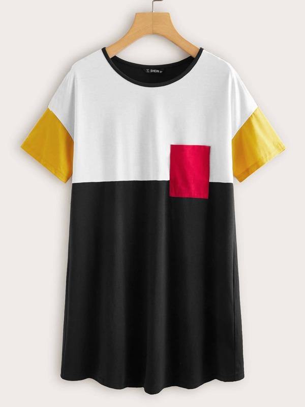 Pocket Patched Colorblock Tee Dress - $28.00 SGD