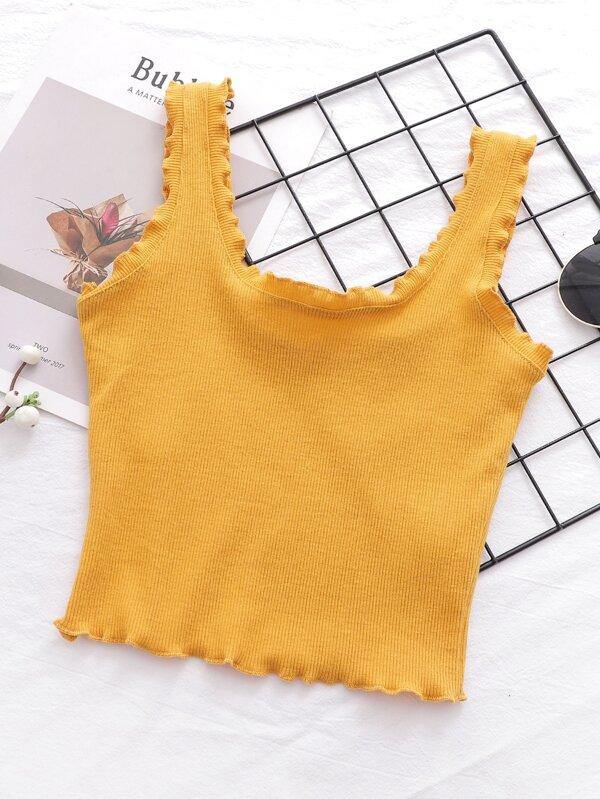 Rib-Knit Lettuce Trim Tank Top - $26.00 SGD