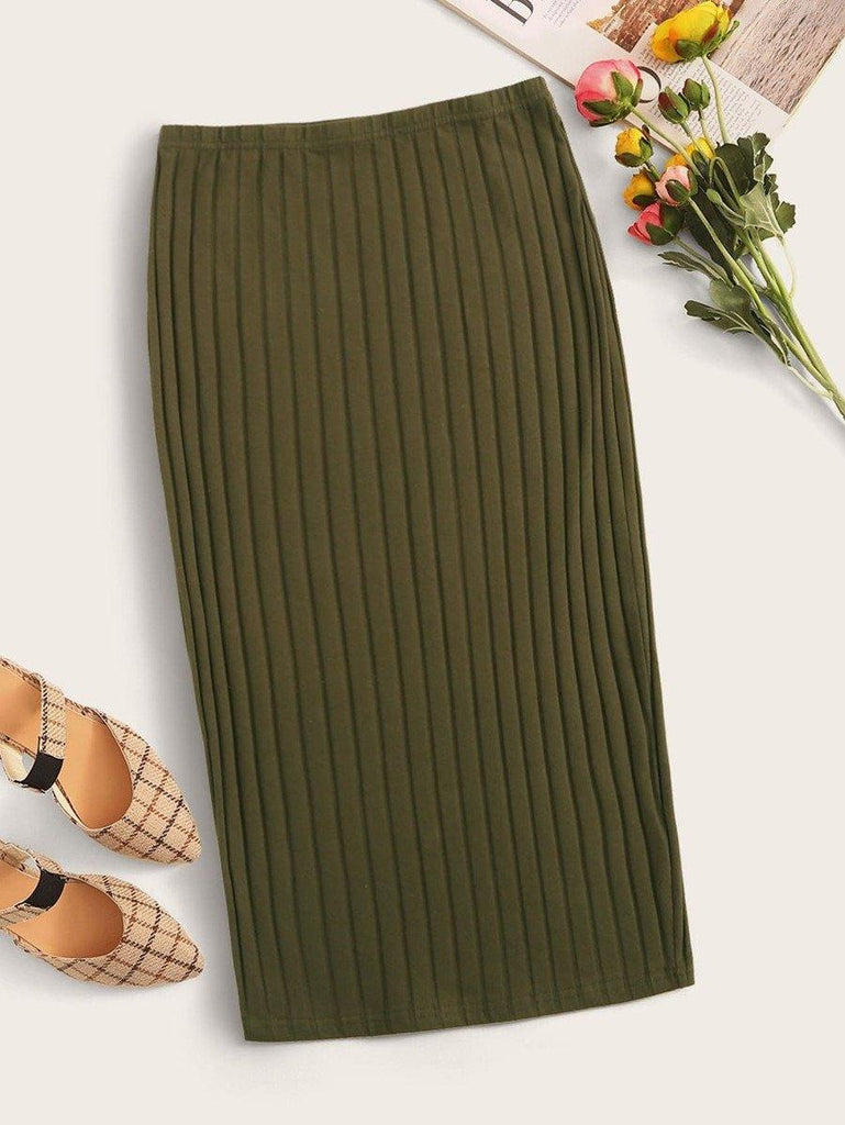 Rib-knit Solid Pencil Skirt