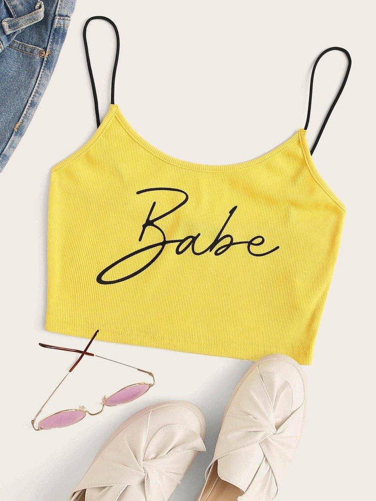 Ribbed Babe Graphic Cropped Cami Top - $28.00 SGD