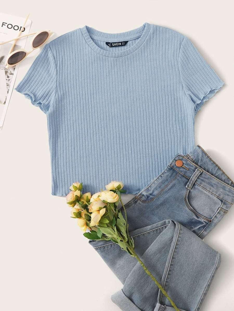 Ribbed Lettuce-Edge Cropped Tee - $16.00 SGD