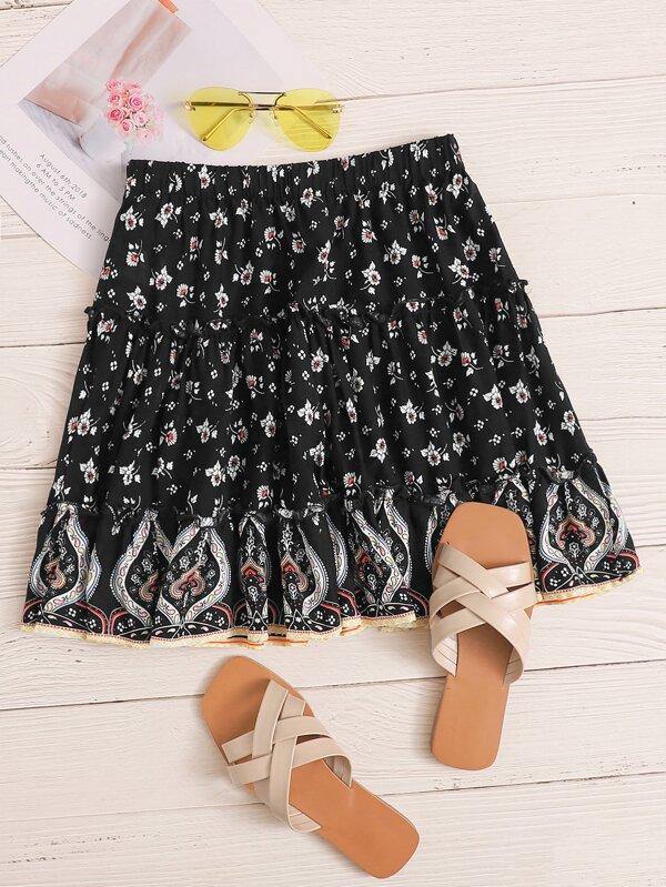 Ruffle Hem Frill Ditsy Floral Skirt - $32.00 SGD