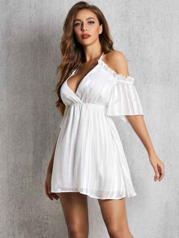 SBetro Halterneck Tie Back Frill Trim Dress - $31.00 SGD