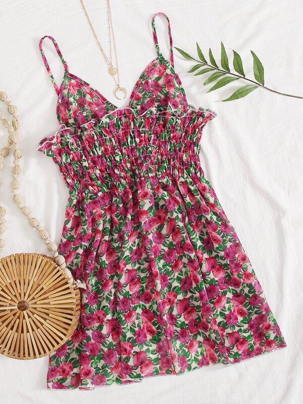 Shirred Waist Floral Cami Dress - $29.00 SGD