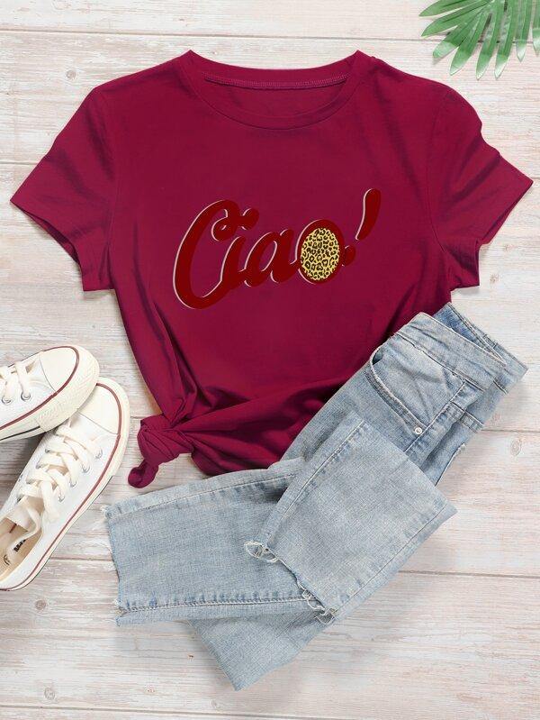 Slogan And Leopard Crew Neck Tee - $34.00 SGD