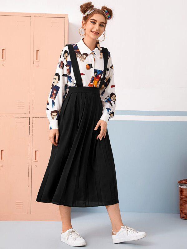 Solid Pleated Suspender Skirt - $27.00 SGD