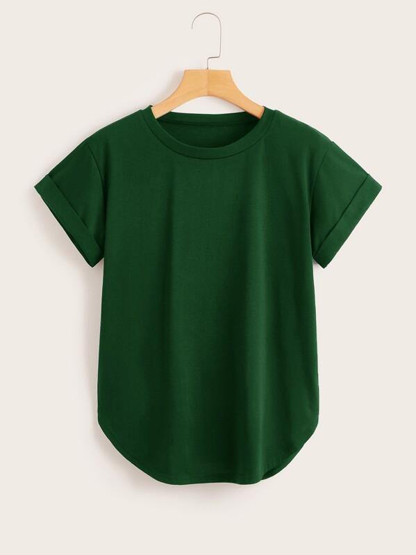 Solid Round Neck Curved Hem Tee