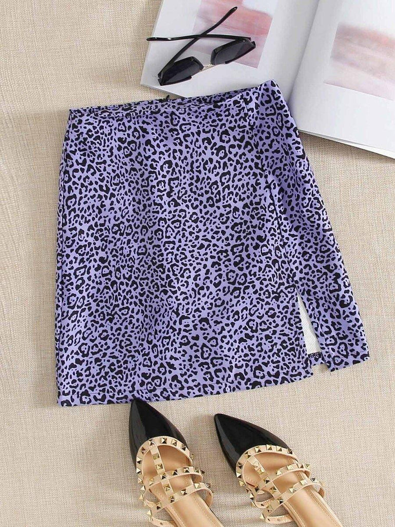 Split Hem Zip Back Leopard Skirt - $25.00 SGD